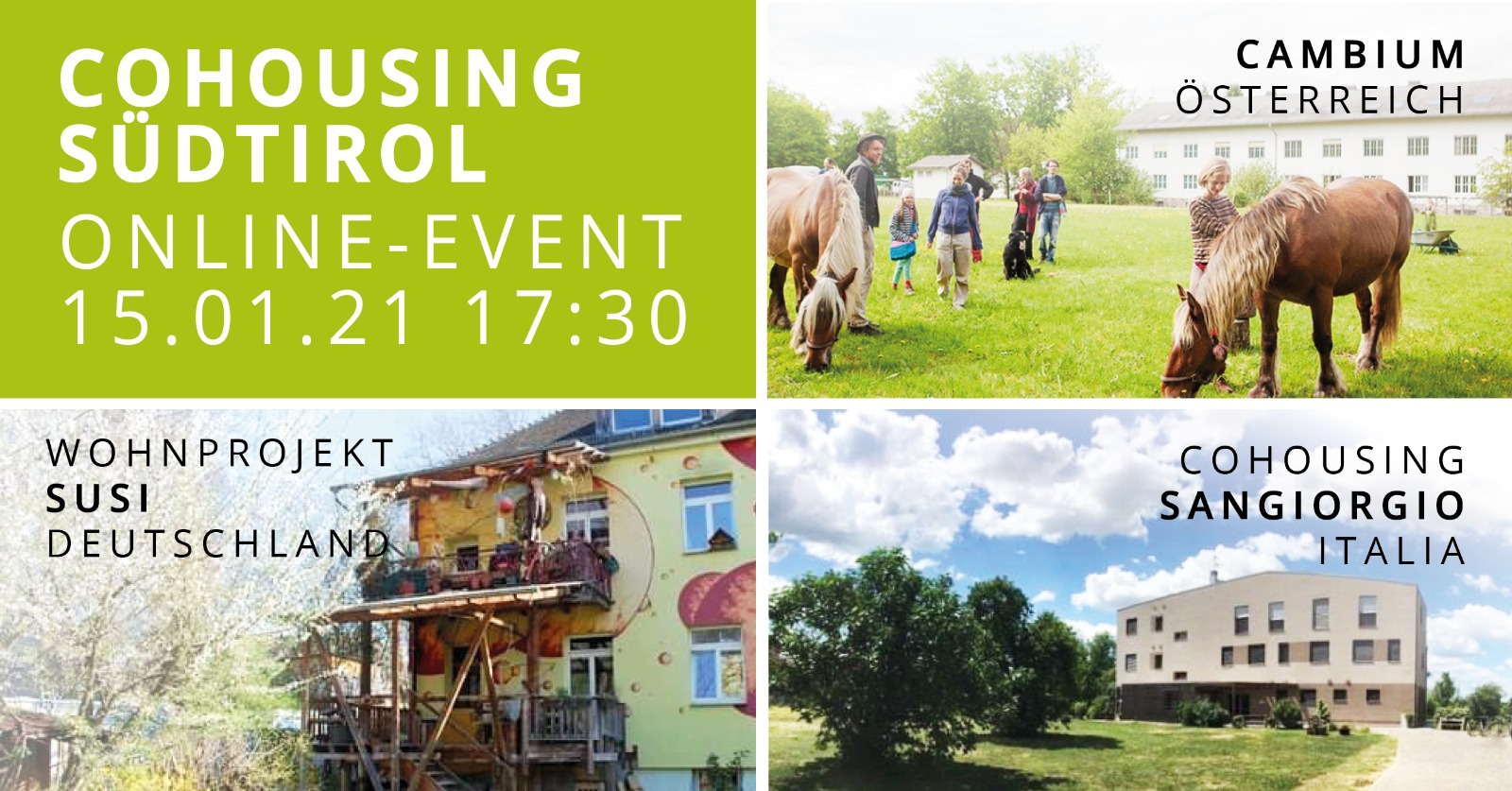 3 konkrete gemeinschaftliche Wohnprojekte: das Kasernenprojekt CAMBIUM in der Steiermark (A), das Wohnprojekt SUSI aus Deutschland und Cohousing SANGIORGIO in Italien.